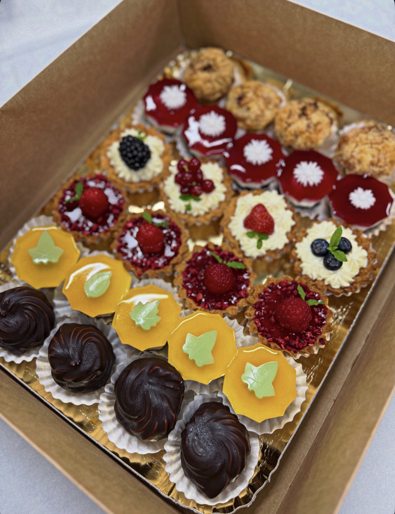 Kartais sunku išsirinkti, ko labiausiai norisi? Šis desertų asorti – tobulas sprendimas! Visko po truputį viename padėkle – paragauk visko ir rask savo mėgstamiausią skanėstą.