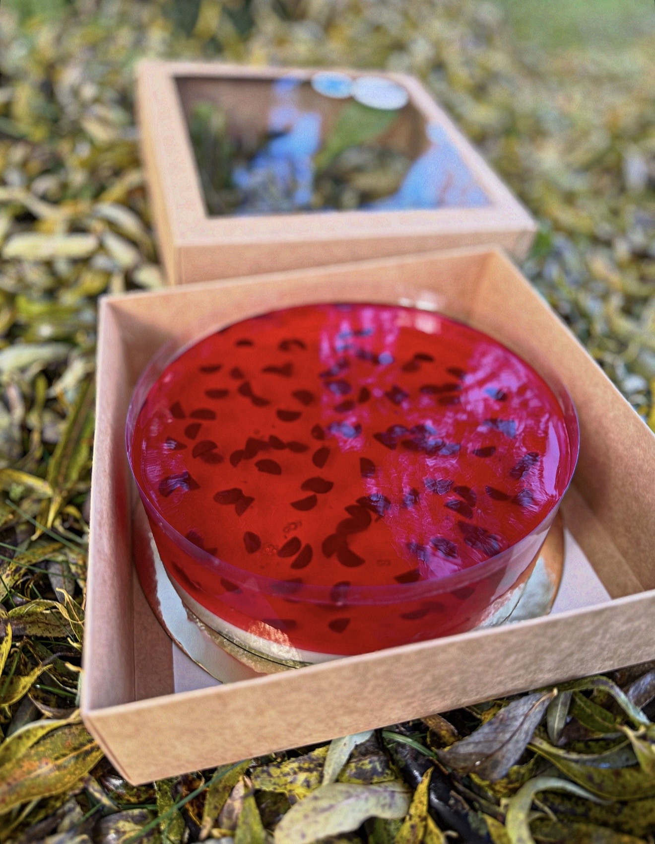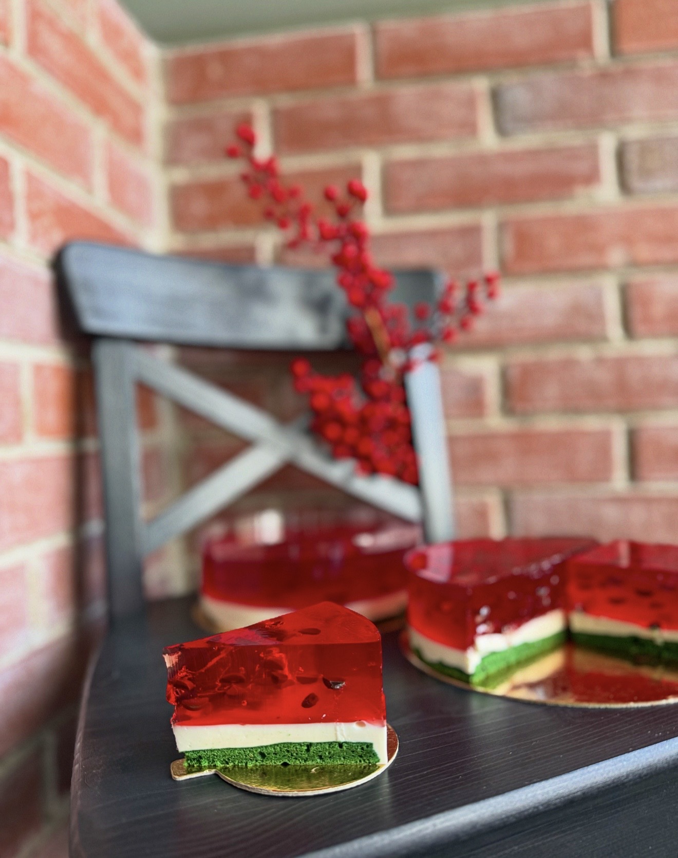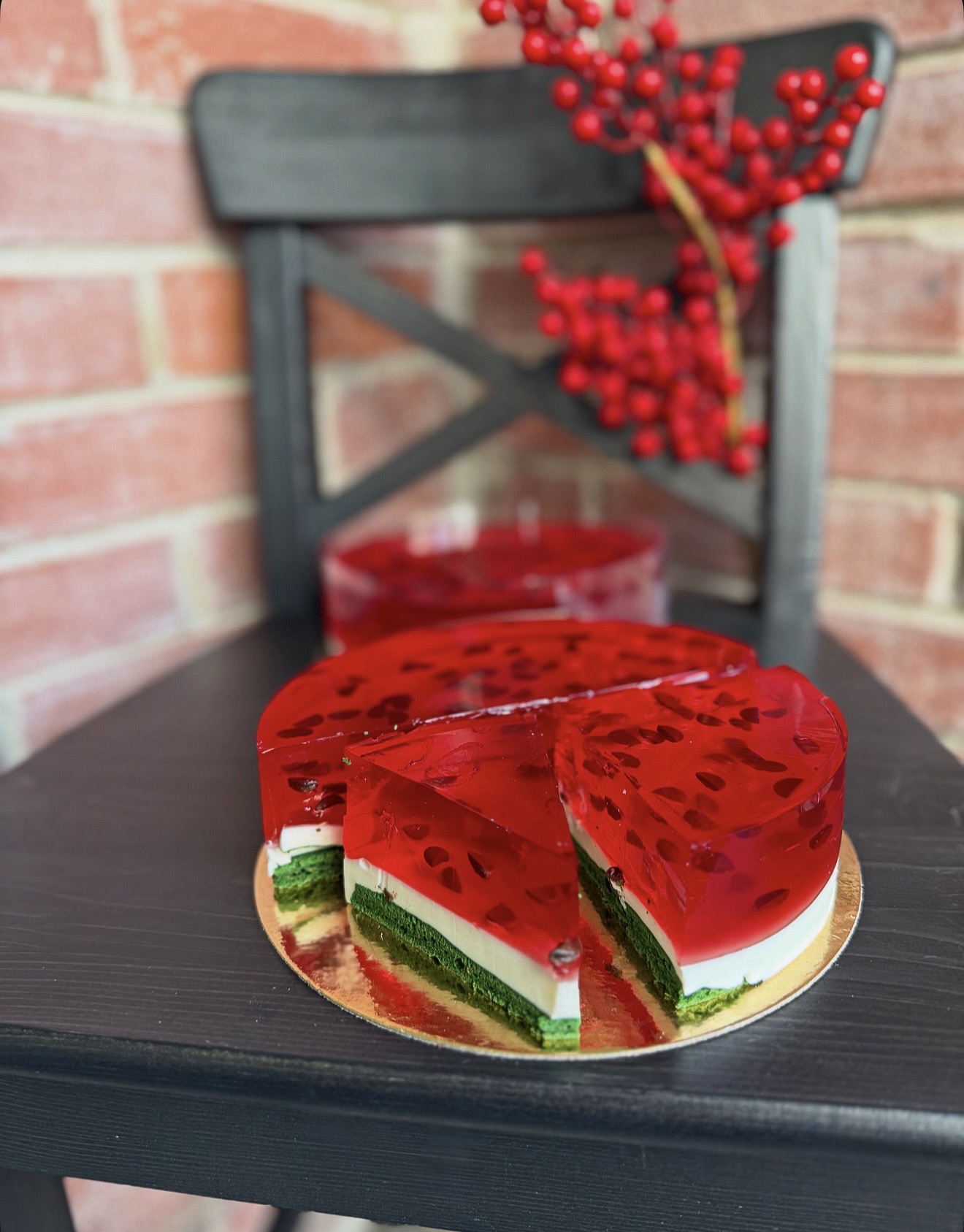Tortas “Arbūzas” su padu pagardintu špinatais.
